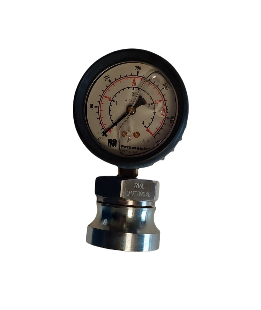 Oryginalny manometr zaprojektowany do monitorowania ciśnienia zaprawy w pompach do anhydrytu. Urządzenie wyposażone jest w męskie złącze typu Camlock 35, co umożliwia łatwy i bezpieczny montaż w układzie hydraulicznym. Dzięki zakresowi pomiaru do 40 bar, manometr zapewnia precyzyjną kontrolę parametrów pracy, co jest kluczowe dla zachowania optymalnej wydajności oraz bezpieczeństwa podczas aplikacji materiałów budowlanych.
